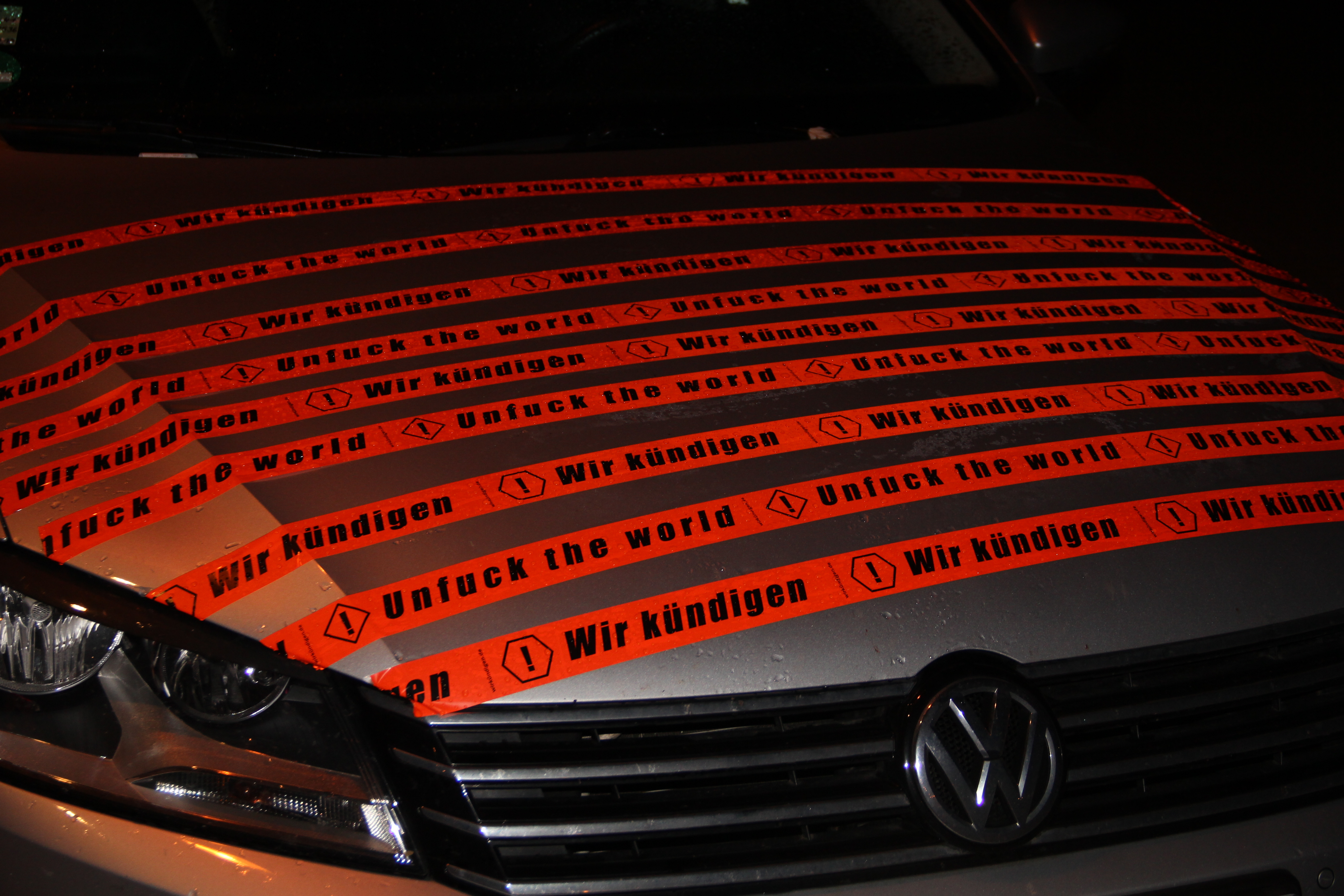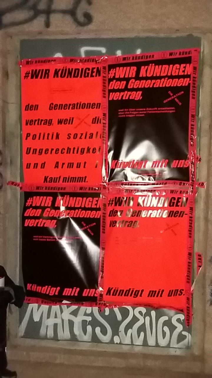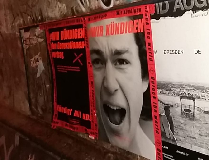 Wer jetzt durch die Straßen von Berlin, Dresden oder Leipzig läuft, wird das ein oder andere Mal rotes „unfuck the world“ Tape oder schreiende Gesichter auf Neonfarbenen Plakaten sehen. Auch VW- und Google-Werbung bleiben nicht unkommentiert. Dort kleben Stickers wie „Nicht kaufen“ oder „NEIN“. Wir setzen somit deutliche Signale und zeigen, was alles andere als generationengerecht ist. Welche Konzerne sollten wir nicht unterstützen, welche Produkte nicht kaufen?! Wir wollen weg vom sinnlosen Konsum, unmenschlichen Arbeitsbedingungen und Umweltzerstörung.